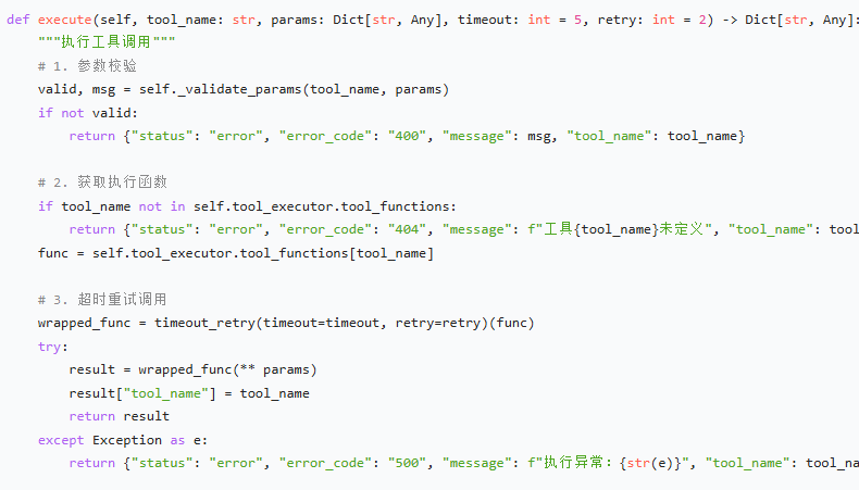 3.工具调用执行器:负责实际调用工具,处理异常;