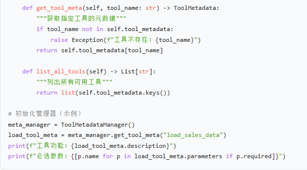 1.工具元数据管理:存储工具的“功能描述、参数格式、返回类型”,是 Agent“认识工具”的基础;