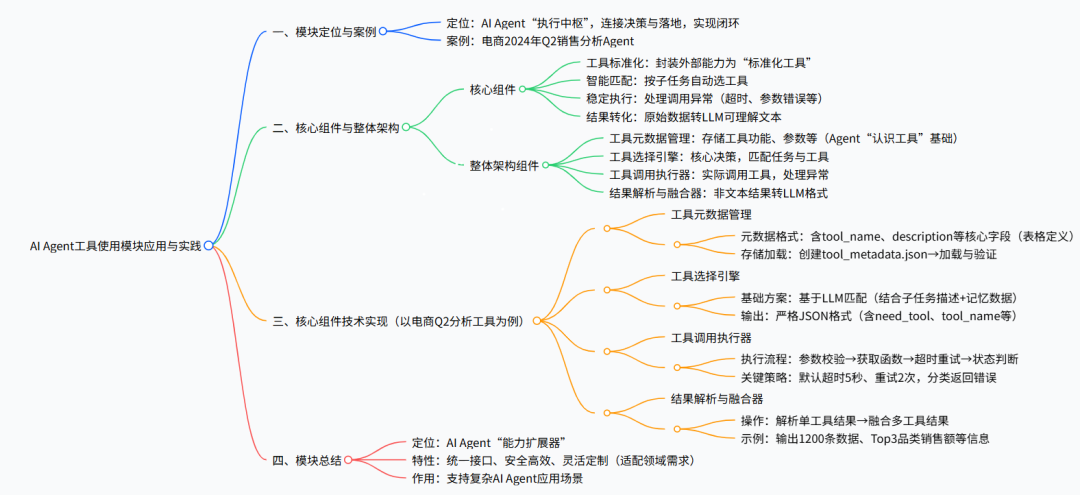 2.智能匹配:根据规划模块的子任务(如 “统计品类销售额”),自动选择最合适的工具;