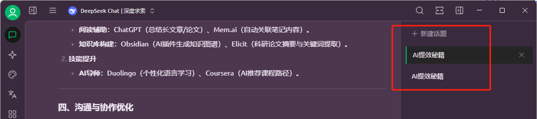 然后再在相互独立的话题中,针对不同的角度、内容,编写合适的Prompt,进行新的对话。