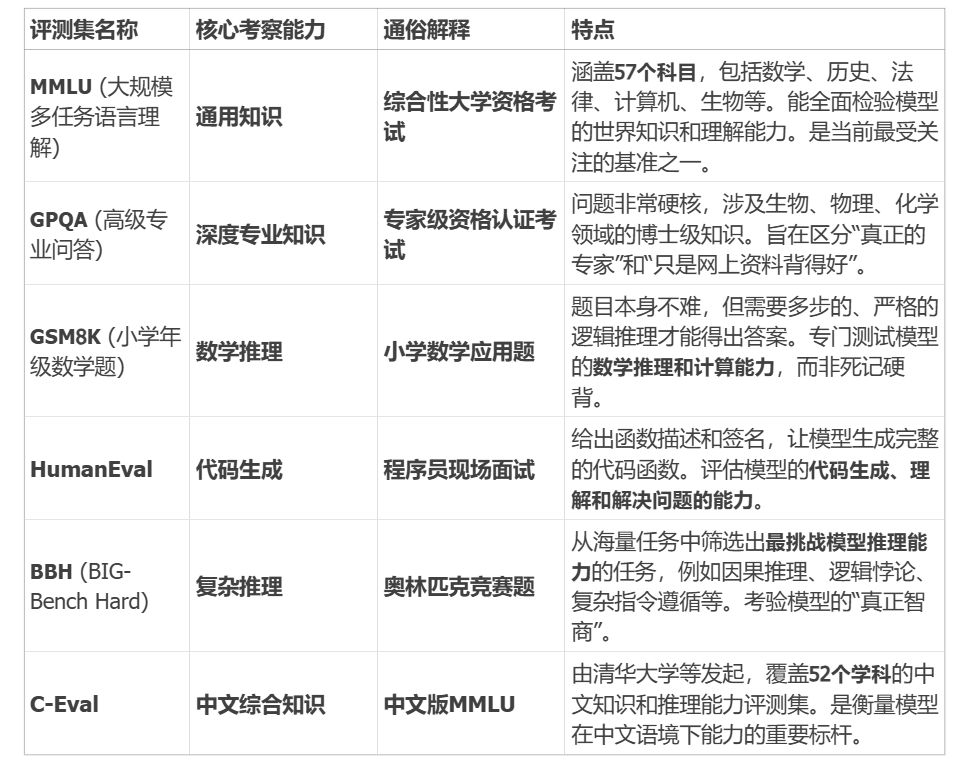 想象一下:你要买手机,会不会先看看跑分软件上的分数?Benchmark就是AI界的“安兔兔跑分”,帮助大家客观比较不同模型的性能。