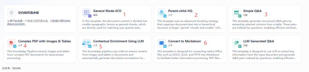 在升级之前我们要么在后台直接上传文本处理知识库,要么在通过工作流或者代码直接调用api处理。在本次升级以后,官方直接把知识库的处理流程给开放了出来,并且提供了一些模板案例。