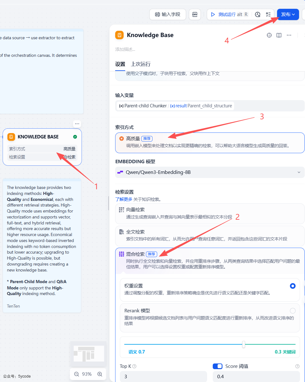 第四步:知识库配置,这里主要是配置索引方法和检索策略,这个和第三步紧密关联,