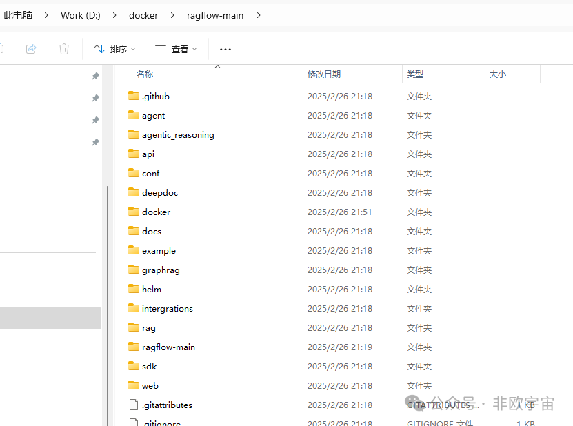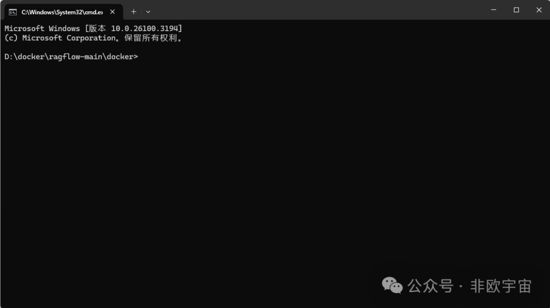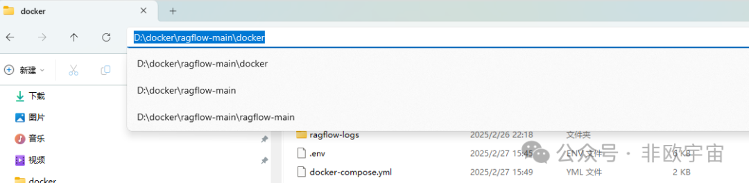 进入ragflow-main\docker文件夹,输入cmd。可以直接以管理员身份进入该文件夹。