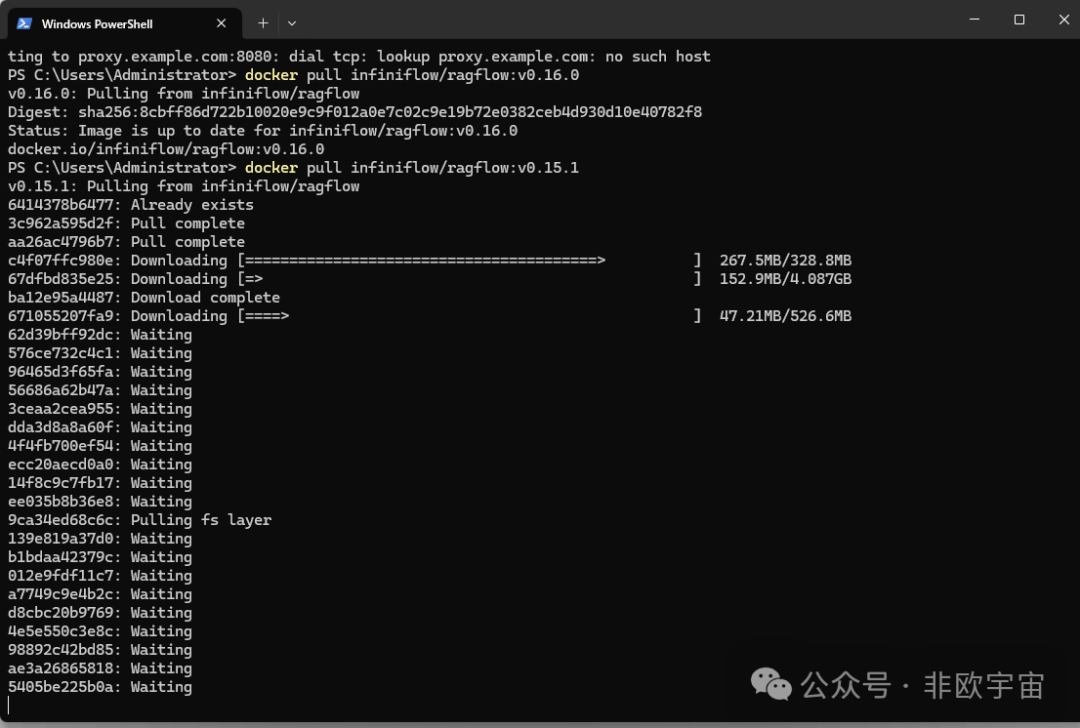 再拉取RAGFlow的镜像。“docker pull infiniflow/ragflow:v0.16.0”