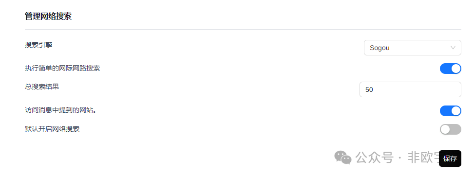 选择可用的联网搜索引擎。我用了一个付费的AI搜索引擎。官网“https://bochaai.com/”,目前质量尚可,就是速度一般。正在找更好的搜索引擎。其他引擎需要科学上网和代理设置。