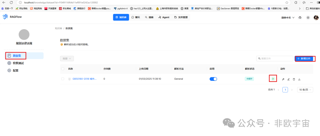 保存后进入数据集。新增文件并点击解析。