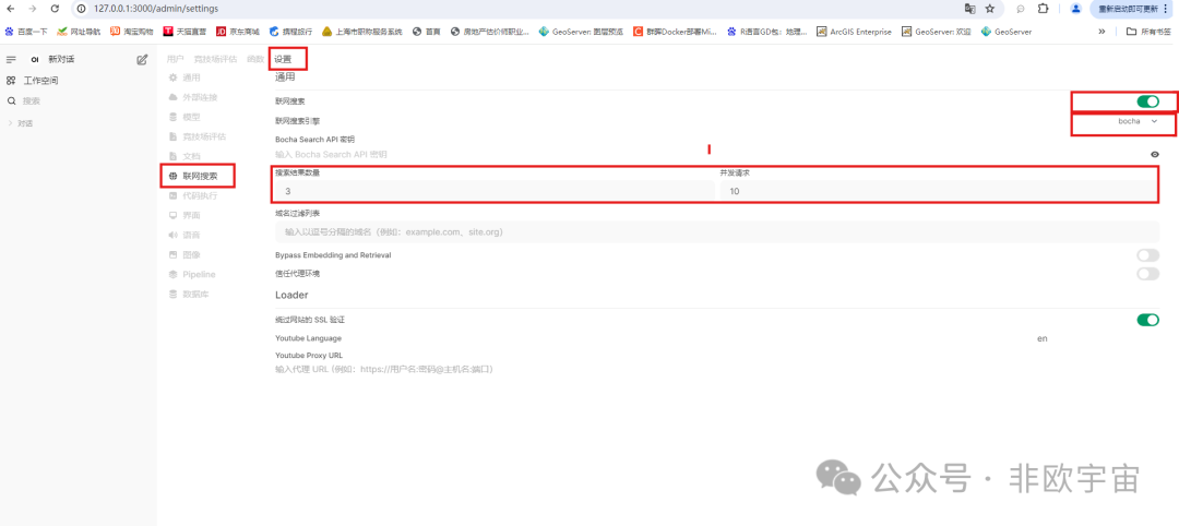 自己安装后,或采用别人的平台,注册后以管理员身份登录。只有管理员才能设置联网搜索功能,普通用户只能使用。