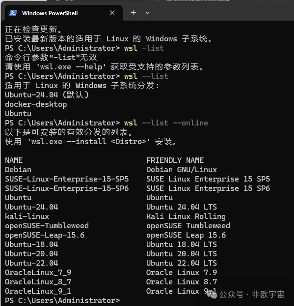 也可以通过命令行查看在线版本。“wsl --list --online”。