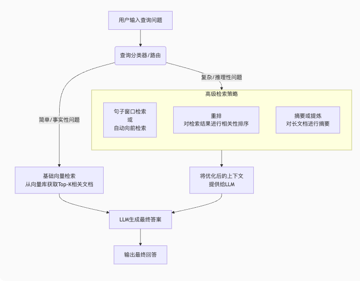 - 依据分类器标签类型,动态调整向量数据库检索策略参数