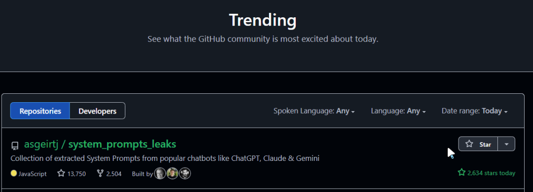 两眼一睁,就看到了这个新增了 2634 个star ⭐ 的项目 —— system_prompts_leaks