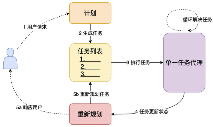 - 执行阶段(Execute):严格按顺序执行规划好的步骤。