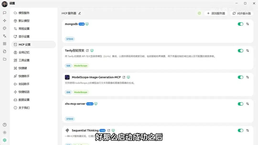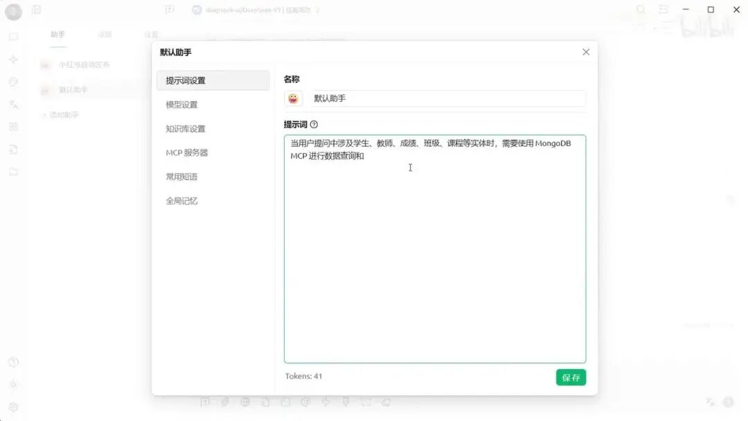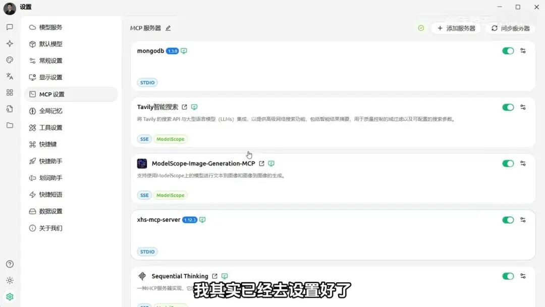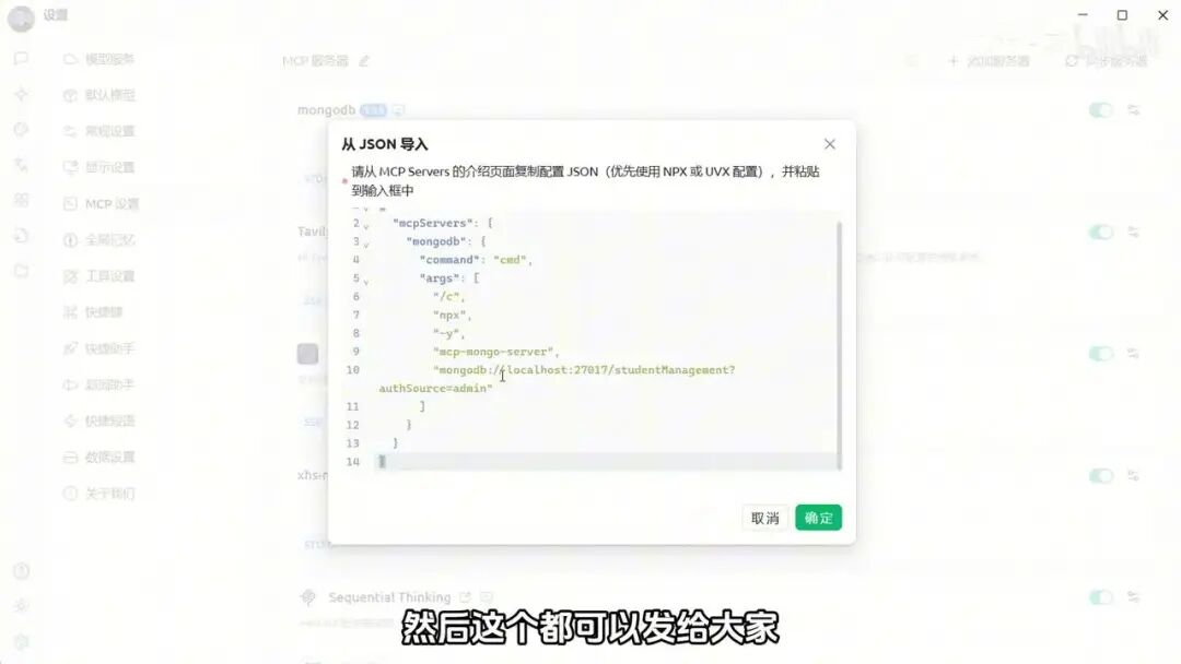 可以给大家分享一下。好,然后这个数据我们把它都处理好之后,接下来就可以在 Cherry Studio 当中配置我们的 CPserver,让我们的 AI大模型 可以连接到 MongoDB 数据库当中。所以接下来我们同样点击设置,然后需要点击 CP 的设置。那么在这点