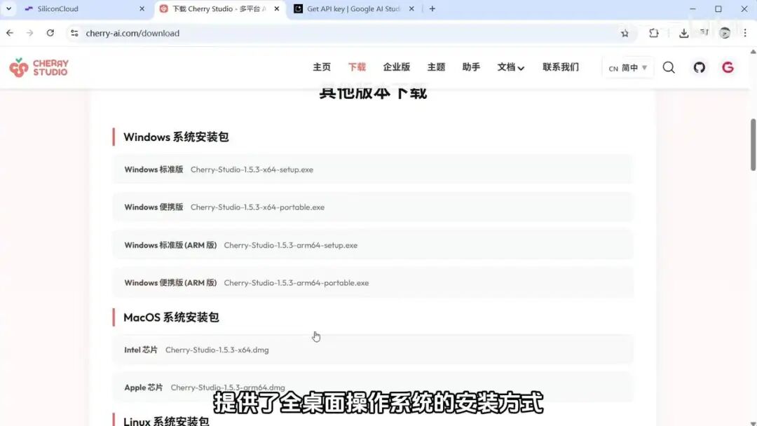 那Cherry Studio的话,它提供了全桌面操作系统的安装方式,安装过程也十分简单。下载安装包之后,一路点击下一步就可以了。