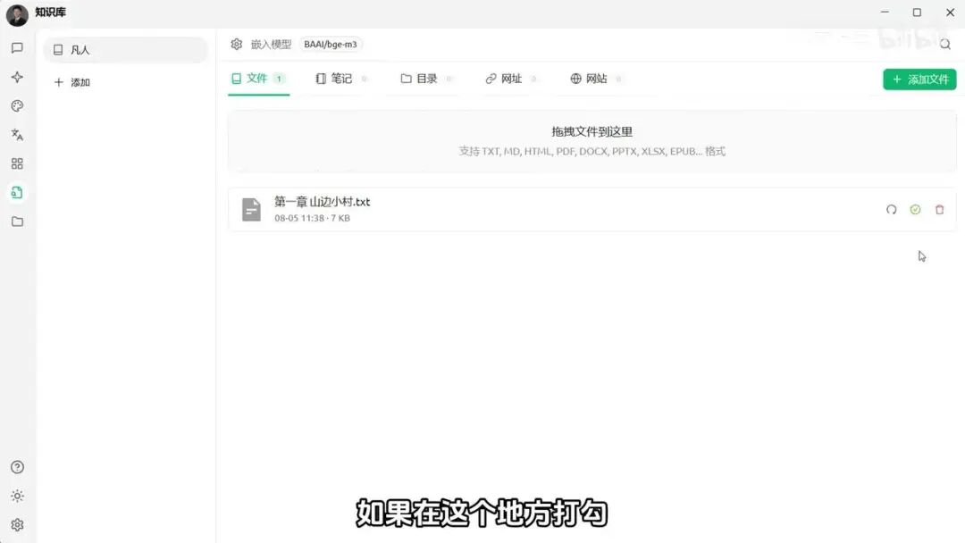 确定完成后,我们就可以把文件添加到知识库了。在这里我选择的文件其实就是我们的章节。