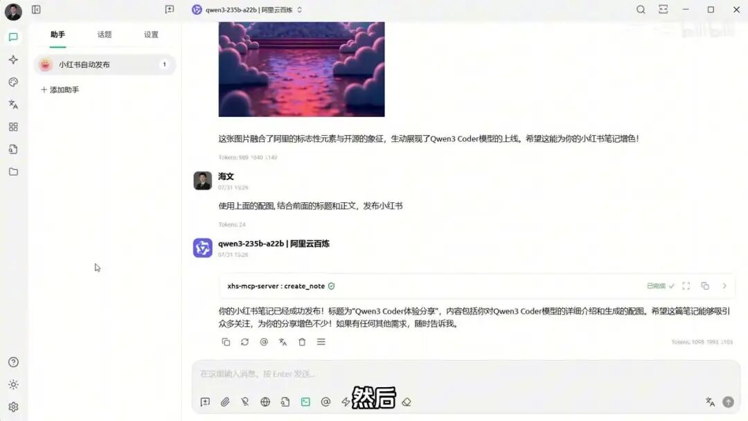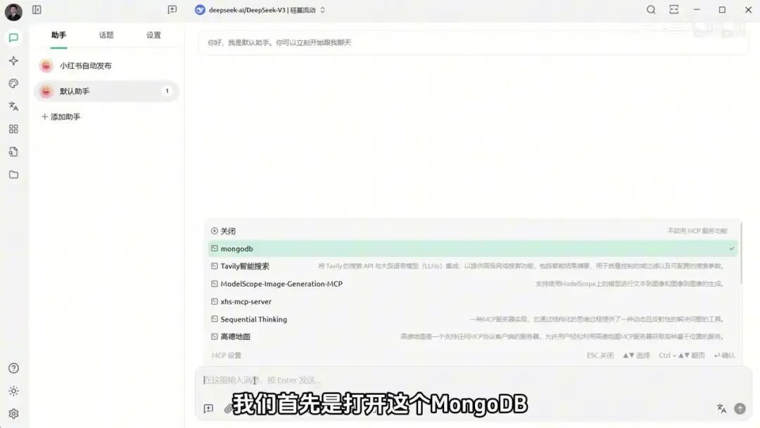 好,连接成功之后,接下来我们就可以回到聊天的窗口。比如我们再添加一个助手。