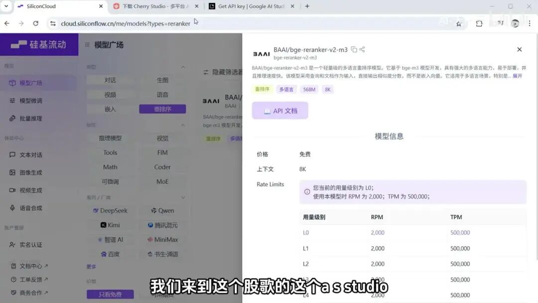 语例分析后,再进行重新排序,把相关性较大的排到前面。这相当于先通过embedding模型做一个粗略的检索,再用重排序模型做一个比较精准的排序,可以进一步提高检索的精度。接下来我们要先添加。