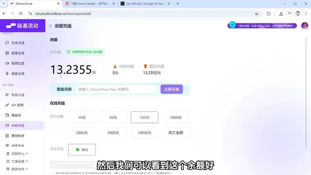 好,大概是14块钱的一个样子。来到硅基流动之后,我们首先先来做一个API的密钥。