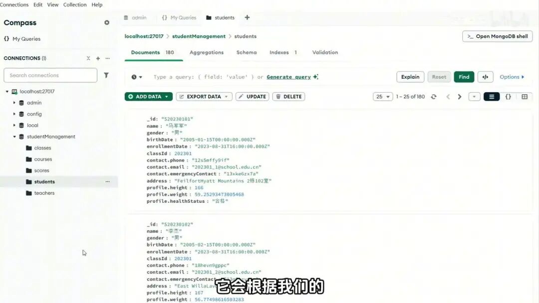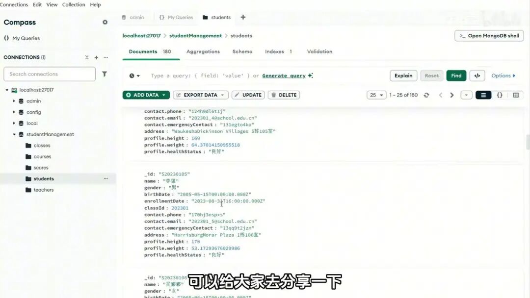 来看一下我们一些学生的数据。这里面的数据一共是180条。