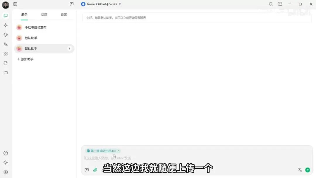 好,然后在这里我们把这个模型改一下,我们把它改成这个Gemini 2.0 Flash。改成这个之后,那其实我们就能够去上传这个文件了。比如你可以上传更复杂一点的文件。