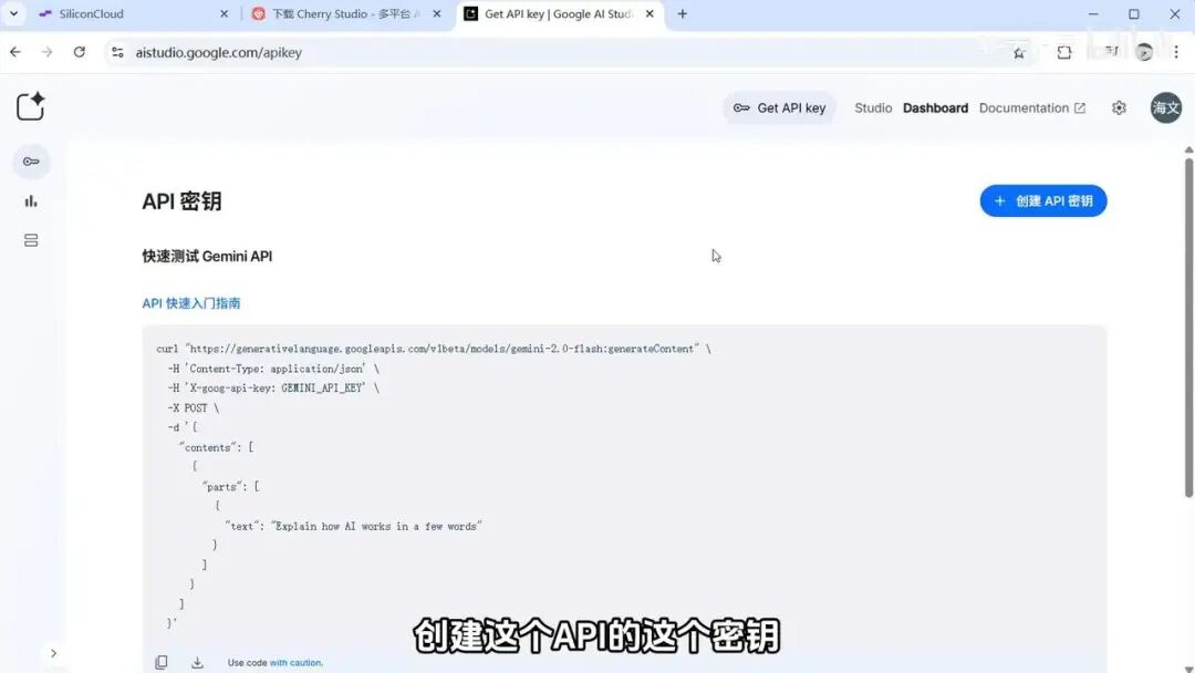那大家如果说没有的话,可以直接去新建一个,然后把API密钥复制到我们的窗口中来,填进去就可以了。