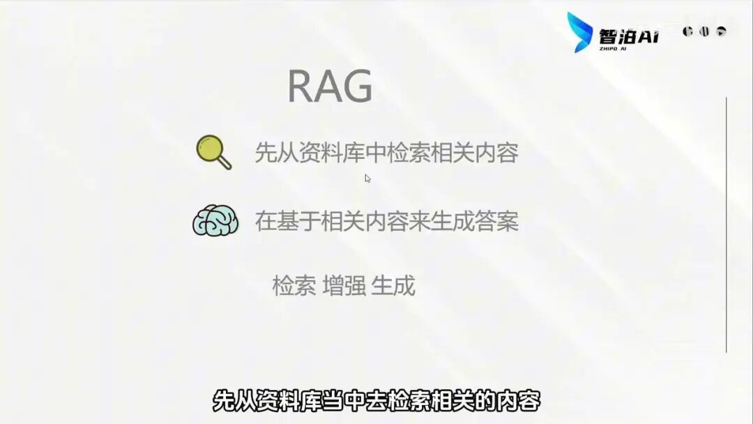 第一个部分是我们先从资料库当中检索相关的内容,然后模型再基于这些内容生成答案。也就是先检索再生成,所以叫做检索增强生成。