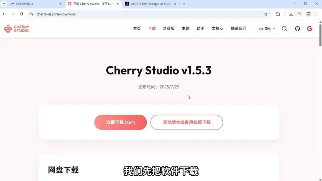 第二个检索不够精准,第三个没有大局观,缺乏全局的视角。接下来我们先用 Cherry Studio 搭建一个本地知识库,然后再分析这一套流程的局限性。好,下面我们来到 Cherry Studio 官网,先把软件下载并安装一下。