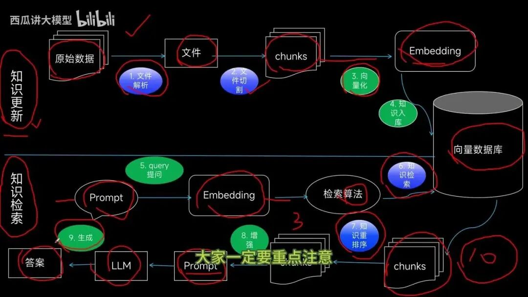 接下来我将介绍经典RAG流程的核心部分,该流程主要分为知识更新和知识检索两个环节。