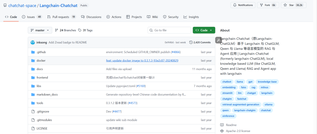 - 开源协议:GitHub 开源(https://github.com/chatchat-space/Langchain-Chatchat),基于 MIT 协议允许商业使用与二次开发