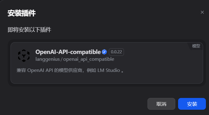 在弹出的配置窗口中,选择我们刚刚安装的 OpenAI-API-compatible 插件,然后填写以下关键信息: