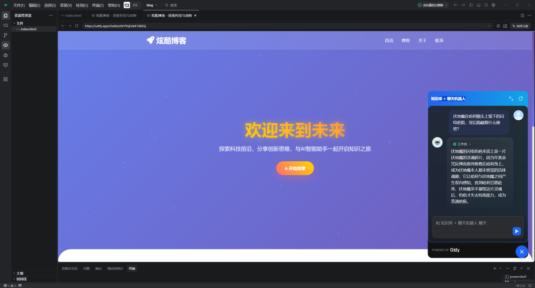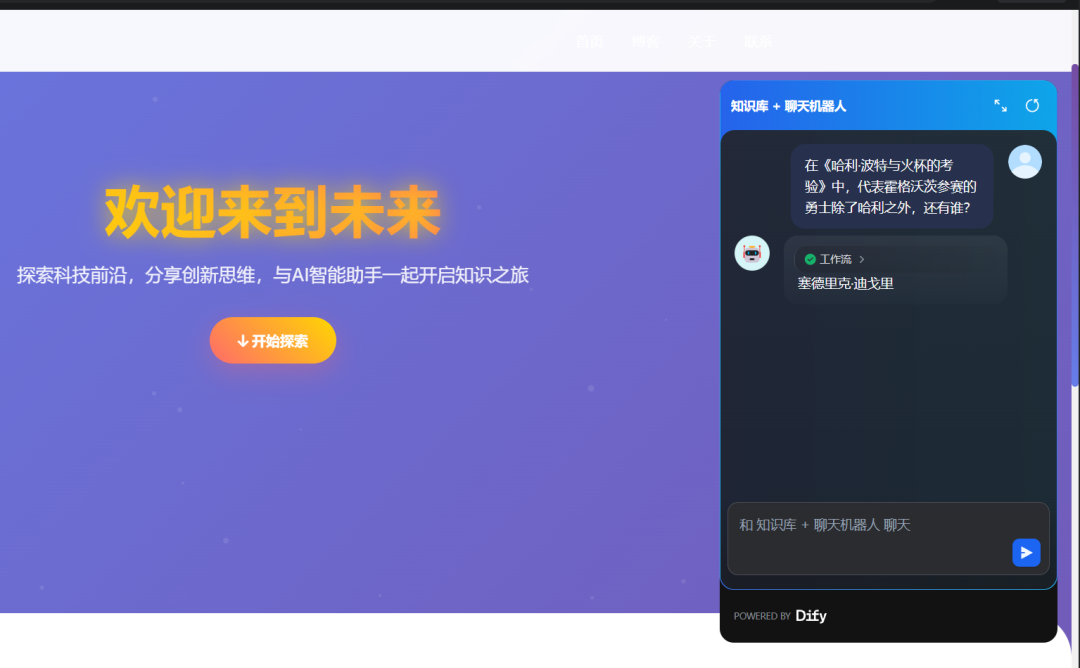然后打开浏览器,访问 http://localhost:8000。你将看到你的网页,并且在右下角出现了一个 Dify 聊天图标。