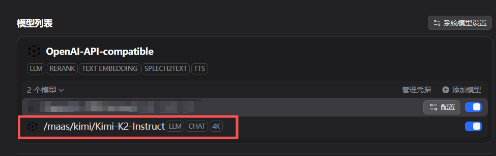 点击保存,蓝耘提供的 Kimi K2 模型就成功添加到了 Dify 的模型库中。