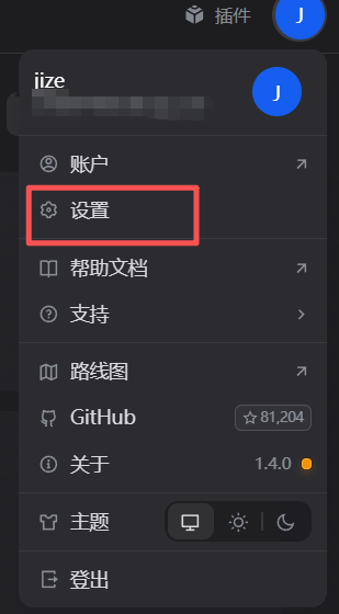 点击右上角的用户头像,在下拉菜单中选择“设置”。