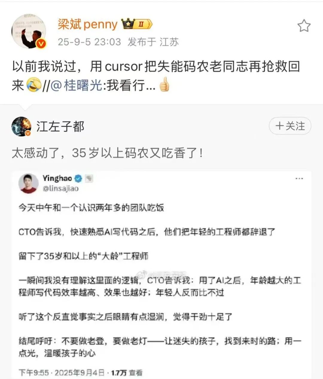 当面对同一个需求时,年轻程序员看到的是一个孤立的技术问题,而35岁程序员看到的是一个完整的业务场景。这种差异直接决定了AI输出的质量。