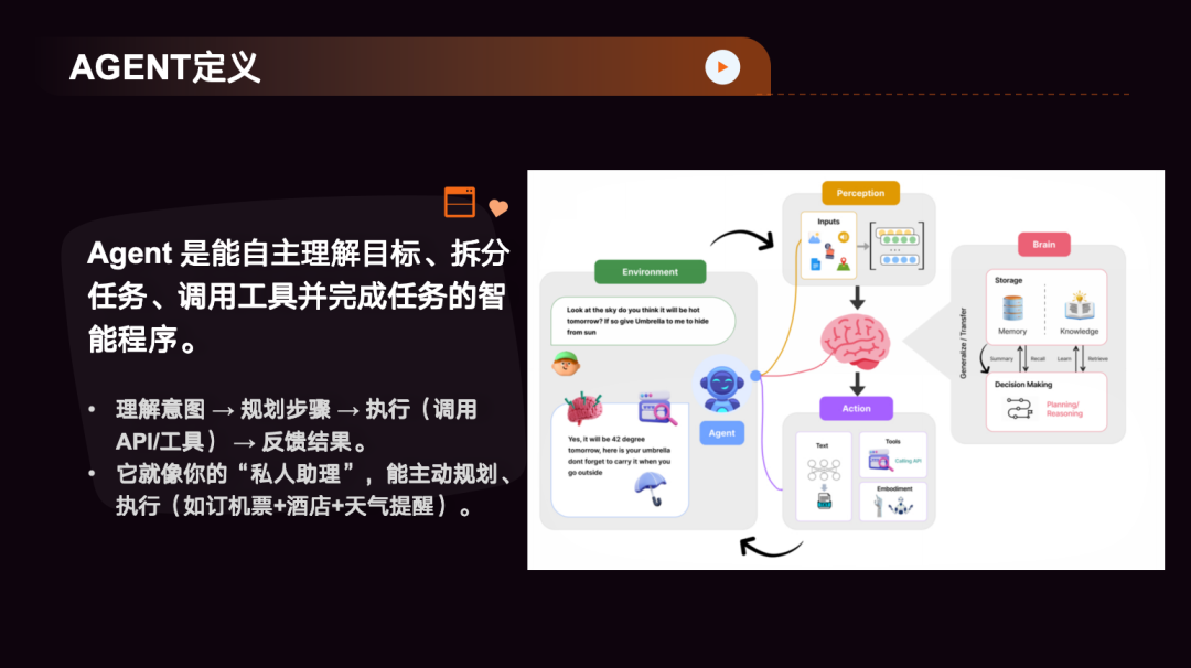 昨天在学校做了一场Agent应用入门的分享,现把PPT整理分享出来,供大家交流。