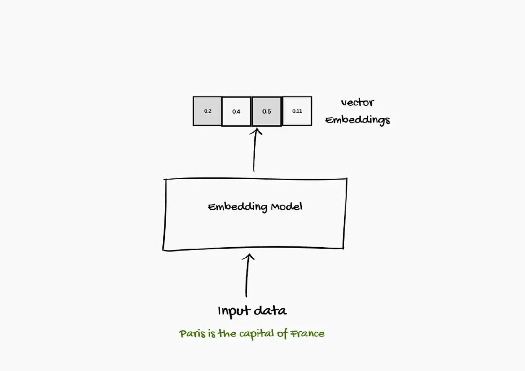 这些 embeddings 是用 embedding 模型创建的。Embedding 模型把词、图像、文档,甚至声音,转成一系列叫向量(vector)的数字。