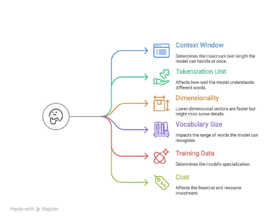 如果我们处理一般知识或客户 FAQs,一般用途 embeddings 像 OpenAI 的 text-embedding-3-small 通常够。但对专业领域像医学、法律或金融,domain-specific 模型如 BioBERT、SciBERT 或 Legal-BERT 是最佳。这些模型训练来理解那些领域的独特语言和上下文。