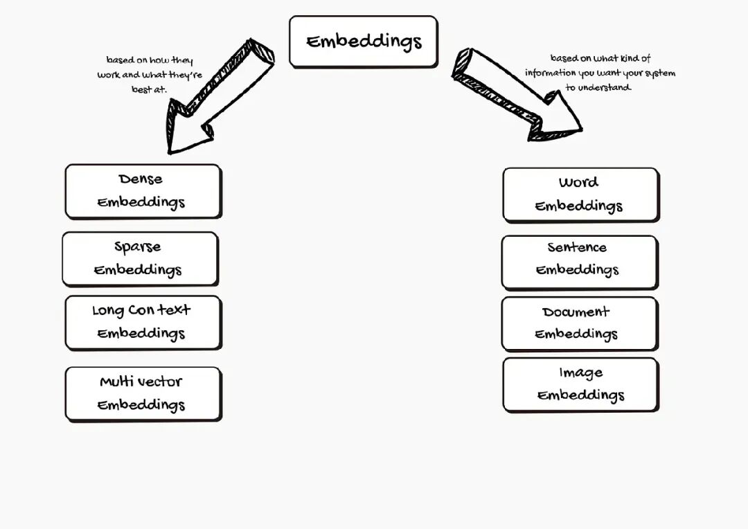 Embeddings 有几种形式,取决于你的系统需要处理什么信息。