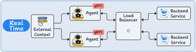 系统架构 实时部署采用微服务架构,Agent封装为REST/gRPC API服务,通过负载均衡器(如Nginx/Envoy)分发请求,配合缓存层(Redis)和推理加速(TensorRT)实现亚秒级响应。