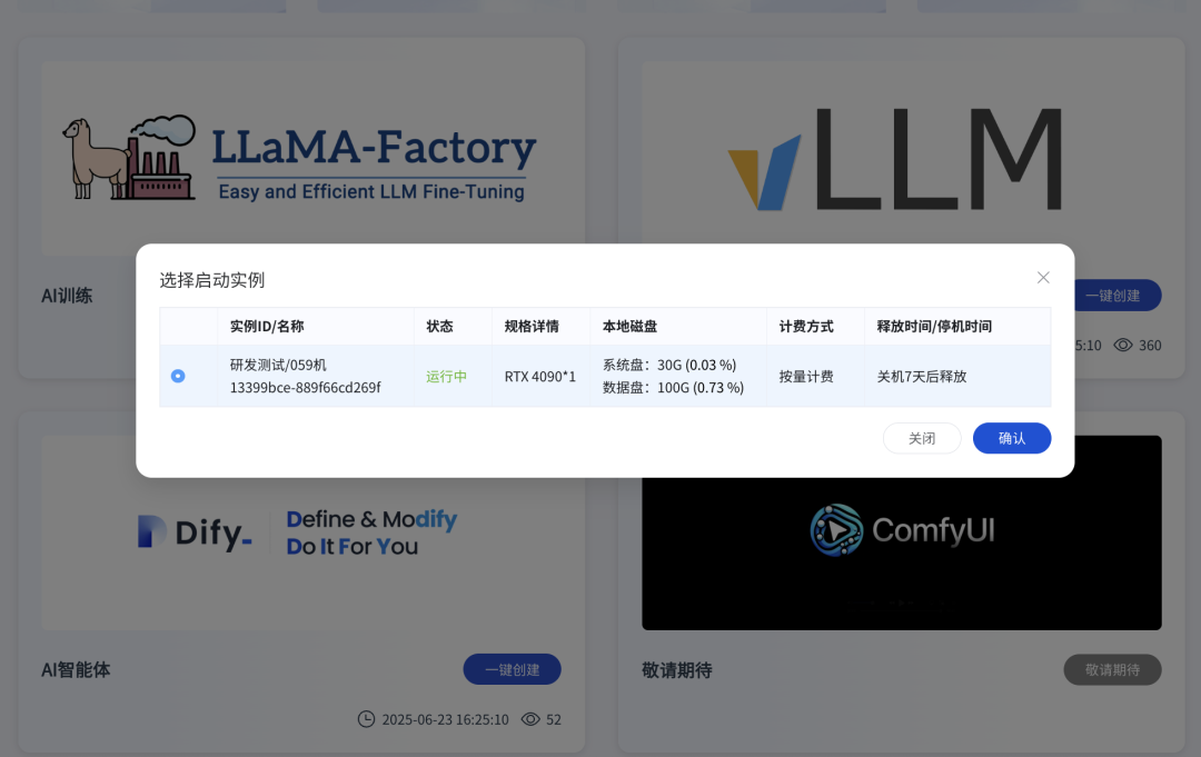 可以选择新建实例和已有的实例(需要 pytorch2.4.0 以上的镜像,通常在镜像名称旁有特殊标记)