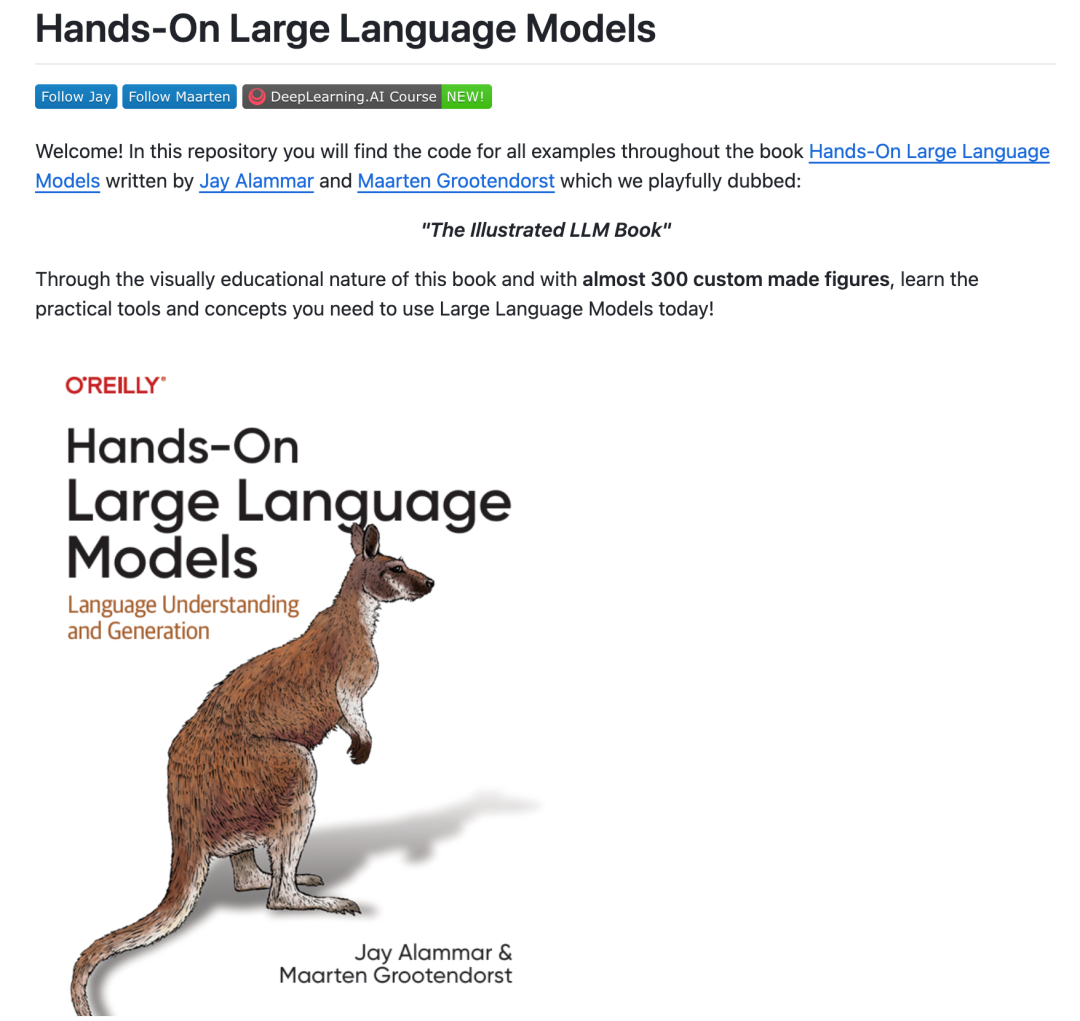 它来自同名书籍《Hands-On Large Language Models》,并附带一整套可运行的 Jupyter Notebook 实例。 通过这些示例,你可以一步步学会: