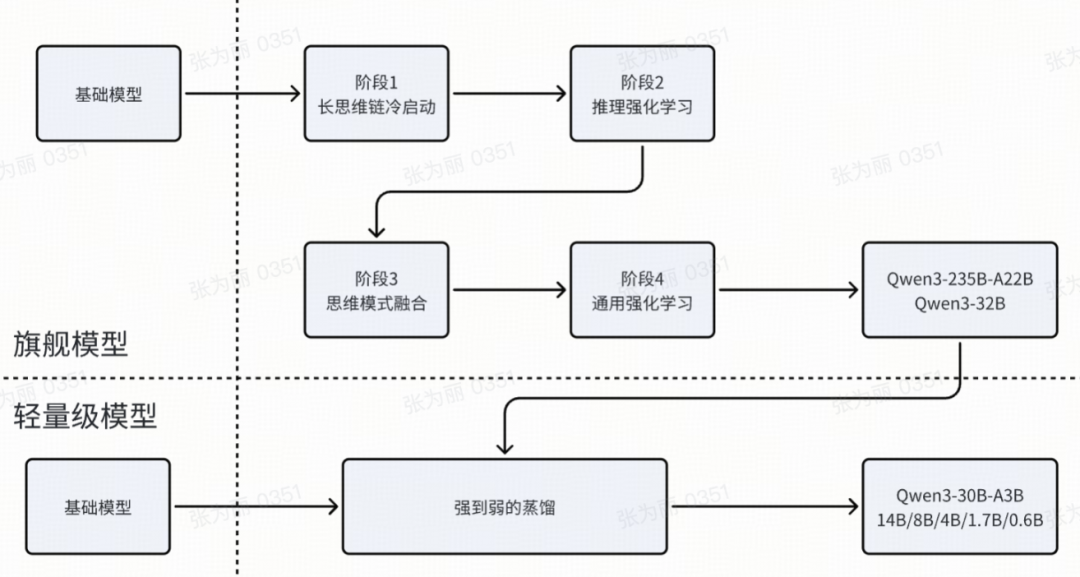 前两个阶段专注于培养模型的“思考”能力。后两个阶段旨在将强大的“非思考”功能集成到模型中。