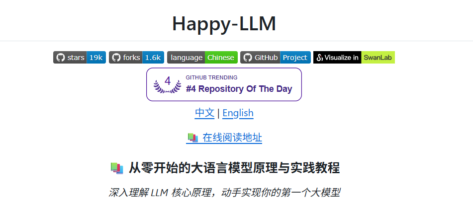 很多教程要么只讲理论,看完还是云里雾里;要么只给代码,跑是能跑,但不知道为什么这么写。Happy-LLM 不一样,它会先告诉你"为什么",再教你"怎么做",学完之后真的有种恍然大悟的感觉 💡。