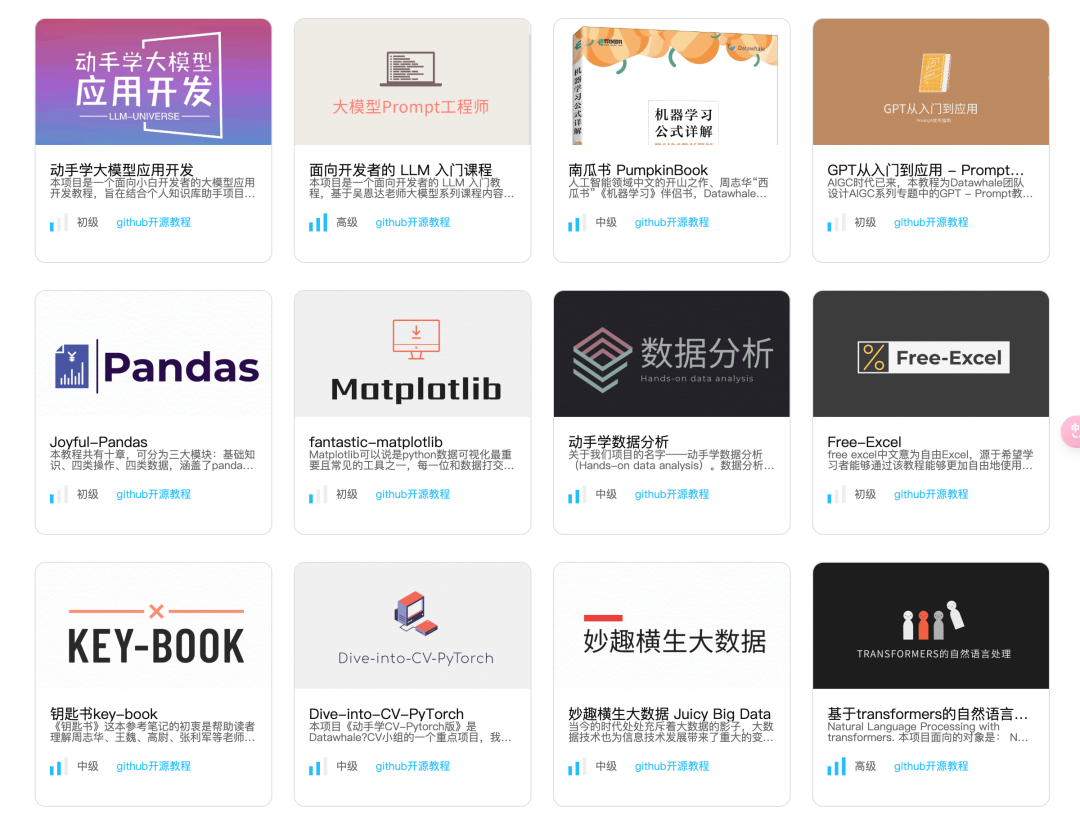 如果经过个人知识库助手的实践对该大模型应用开发具备较高的兴趣,你还可以阅读同为 Datawhale 出品的更多教程: