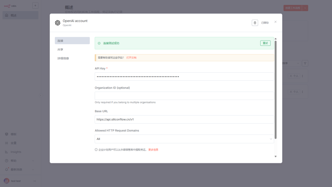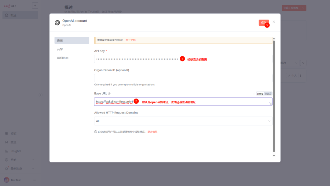 2.2 在 n8n 中创建凭证(使用OpenAI节点):