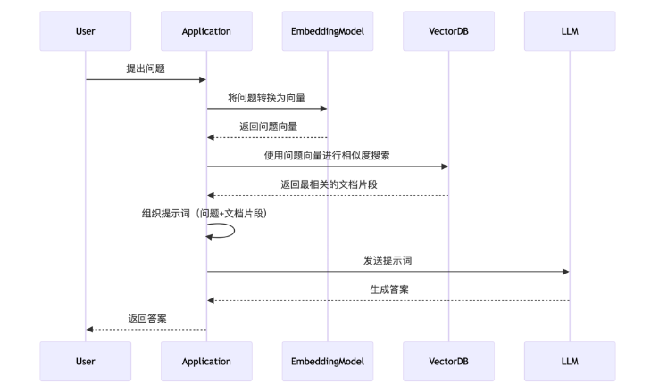 在知识库中导入文档后,系统会通过分块处理将文档切割为语义连贯的片段(Chunk)。这些文本块会经过嵌入模型(Embedding Model)转化为高维向量,存储至向量数据库(Vector DB)。当用户发起问答请求时,系统通过向量相似度检索匹配的文本片段,并将问题与相关上下文共同输入大语言模型(LLM),完成检索增强生成(Retrieval-Augmented Generation,RAG)的智能问答流程。