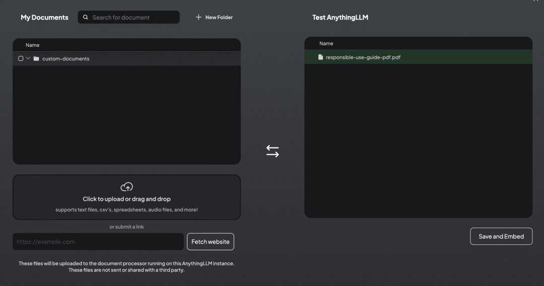 现在到了有趣的部分!你可以将文档上传到你的工作区或直接与你选择的模型聊天。