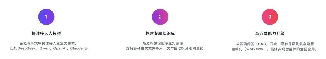 - • 模型无关:支持DeepSeek、Llama、Qwen等私有模型,以及OpenAI、Claude、Gemini等公有模型。