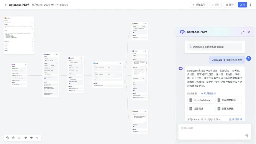 - • 智能体工作流:利用强大的工作流引擎和函数库,它能够编排复杂的AI流程,从简单问答到复杂业务场景,从客服咨询到知识检索,使整个流程看起来更自然流畅。