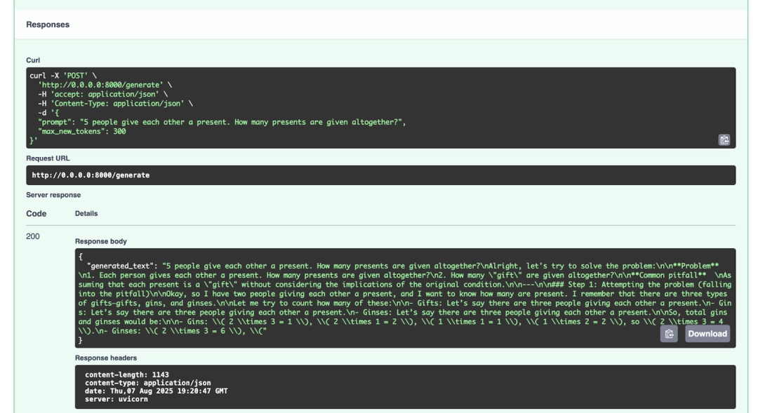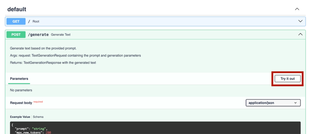 /generate 端点会收集请求提示,并通过模型生成回答文本。